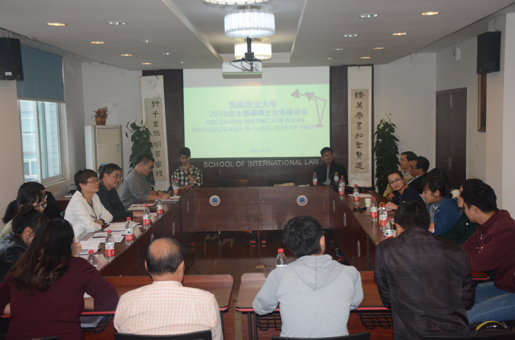 4月27日晚,西南政法大学2016级东盟硕博士交流座谈会在敬业楼6055会议室召开。国际法学院副院长、中国—东盟法律研究中心代理副秘书长裴普教授主持了这次座谈会。